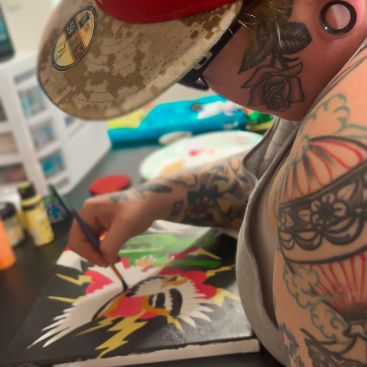 A creative home for people who feel deeply, think loudly, and find peace in making things with their hands. Whether you’re painting at your kitchen table, wearing your art, or creating alongside others, you’re welcome here.